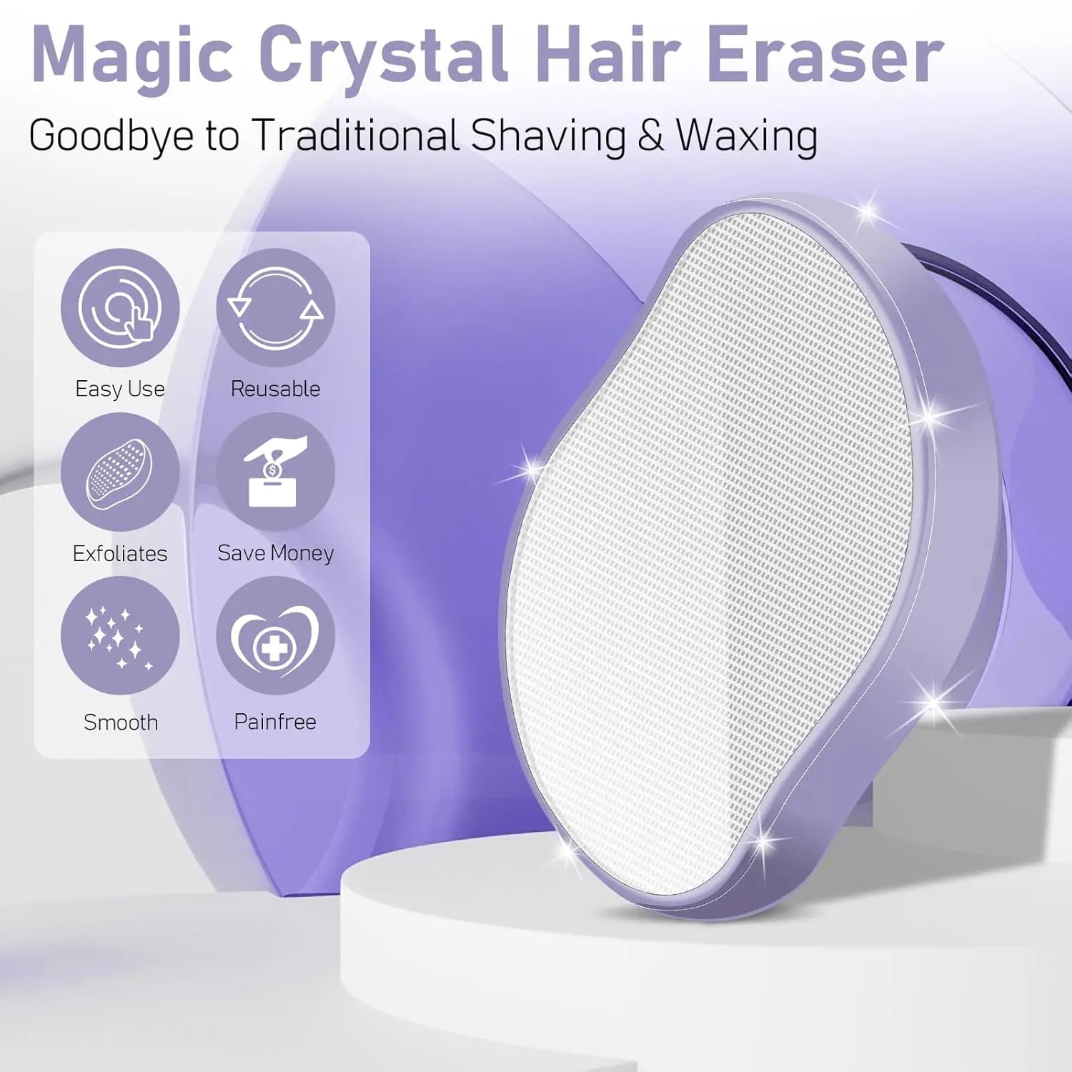 Crystal Hair Eraser: If you are tired of razor cutting, painful hair removal. It uses micro-technology to gently remove hair from the surfaces it touches, simply by sliding the magical surface of the depilator across the skin.