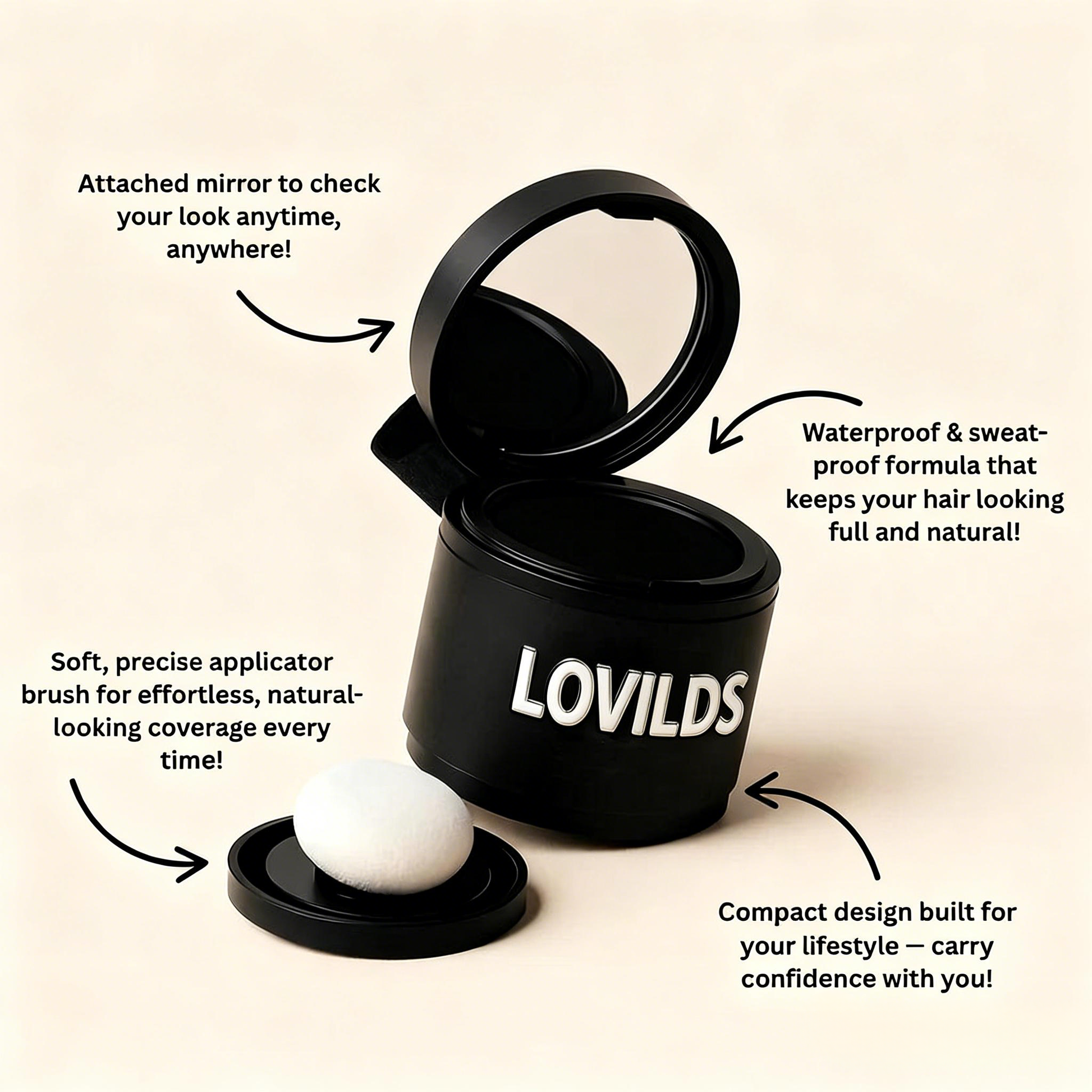 Lovilds™ delivers sweat- and waterproof coverage that stays locked for up to 48 hours, even through workouts, heat, rain, and long days. Its micro-densifying formula blends seamlessly with your real hair for a 100% undetectable finish, even up close. With targeted precision control, you apply exactly where thinning shows — no mess, no waste. The result is weather-proof confidence that doesn’t shift, smudge, or disappear when you need it most.